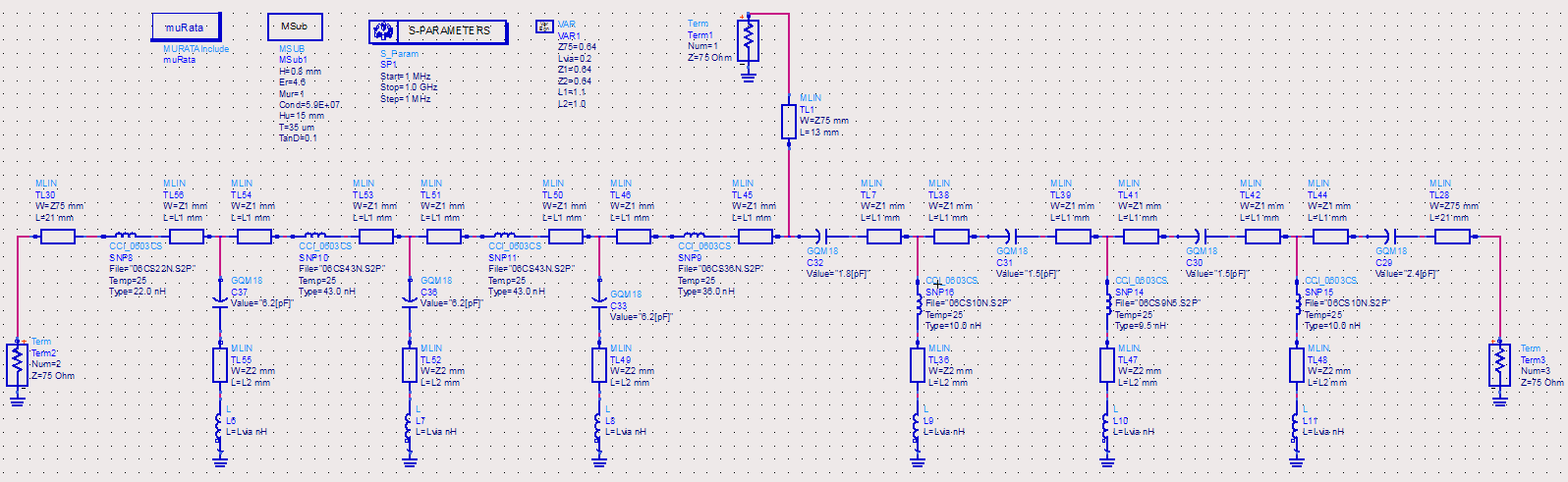 2) Use the Low-Pass and High-Pass filter designers on the RF-tools tab to calculate ideal filters.